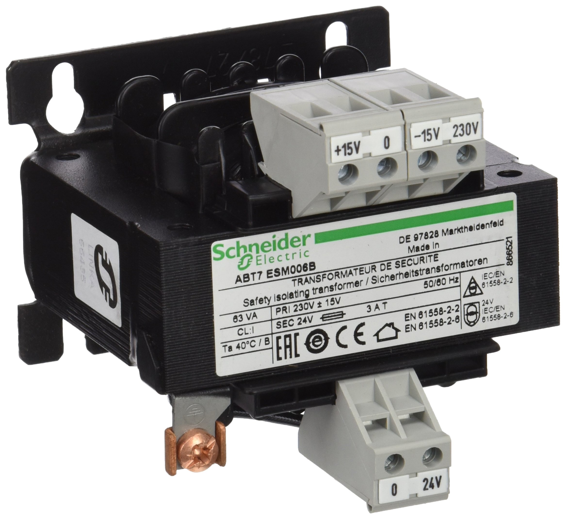 Schneider Electric Abt7esm006b Transformateur 63 VA 230 V, Ecotrf 230 V 24 V 63 VA Snglwound