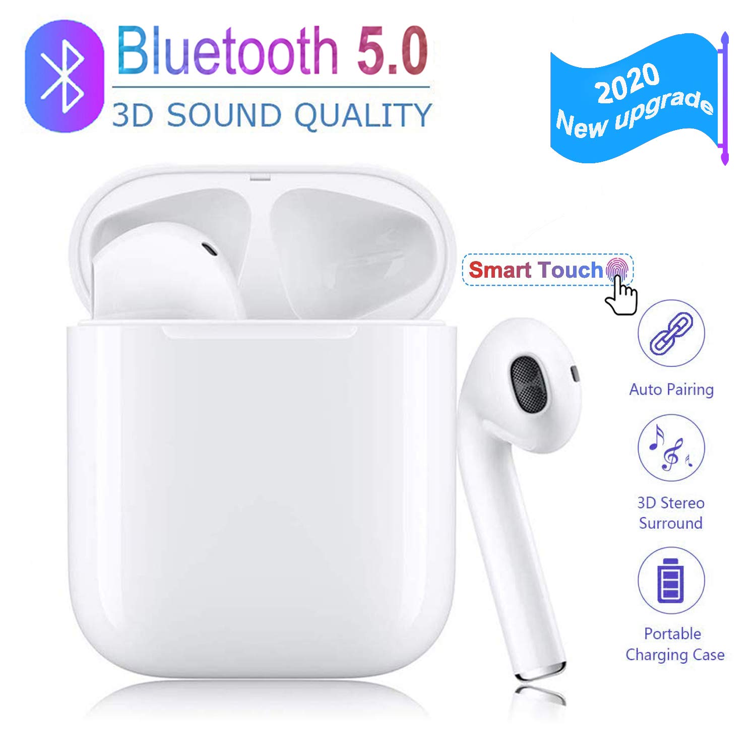 Écouteurs Intra-Auriculaires sans Fils Oreillettes Bluetooth 5.0,Étanche(IPX5) Basse 3D stéréo Sport Mic Casque 20H de Musique Kit Mains Libres pour Apple iphone/Android/Airpods